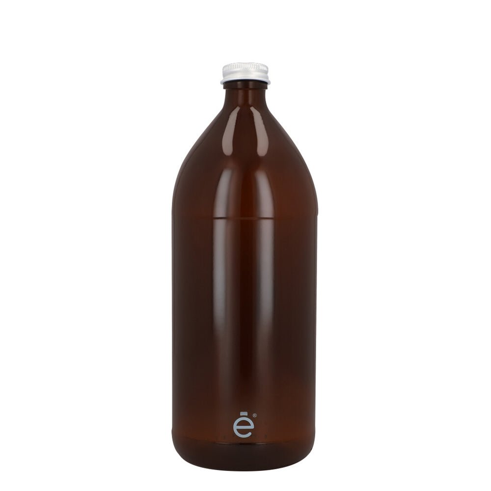 GRADO FARMACÉUTICO - Botella ámbar industrial de 1000 ml con tapa plana estándar de aluminio, perfecta para envasar sustancias químicas, productos de limpieza o cuidado personal, medicamentos, perfumes, aceites, esencias y ¡mucho más!